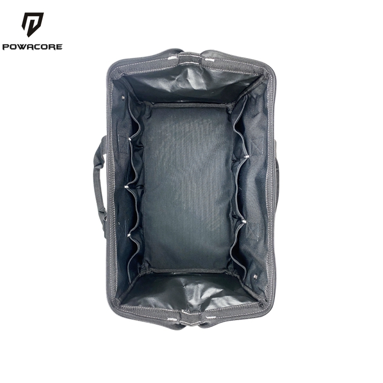 Tool Bag is constructed of 600 denier, water-resistant material and includes 14 large pockets. This tool bag has a wide mouth opening with dual zipper top for easier access to interior. Large main compartment for larger tool storage.. Use the POWACORE 18 inch tool bag with your POWACORE tool pouches. This product carries a 3-year limited warranty and includes a shoulder strap.